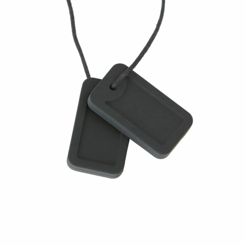 De Chewigem DOG TAG bestaat uit 2 hangers in de vorm van een ID plaatje. Ze worden samen aan een koord geleverd. Je kunt ervoor kiezen om 1 plaatje eraf te halen, zodat je een reserve hebt. De chewigem dog tag is een kauwsieraad voor zowel jongens en meiden met lichte kauwbehoefte! (Er worden dus 2 ID plaatjes aan een ketting geleverd). TIP: Koop er een extra koord bij zo heb je 2 bijtkettingen: 1 voor thuis en 1 voor op school!